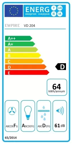 Vestavná digestoř, šíře 60 cm, nerez, max. výkon 405 m³/h (5 Pa), hlučnost Lw 51 – 61 dB(A), 3 rychlosti, odsávací jednotky mají individuálně vyvažovanou turbínu, motory jsou opatřené vratnými tepelnými pojistkami (při přetížení motoru vypne, po jeho vychladnutí opět sepne), mechanické tlačítkové ovládání, kovové sendvičové tukové filtry, které lze mýt v myčce, možnost práce v odtahovém i recirkulačním režimu, výstupní průměr 150 mm, Výbava: úsporné LED osvětlení 2 × 2 W, zdarma redukce na 120 mm a zpětná klapka