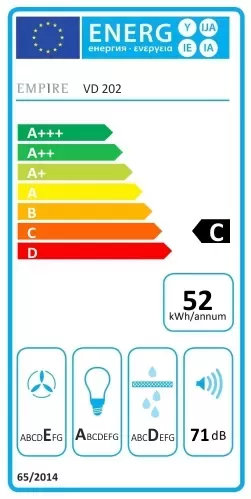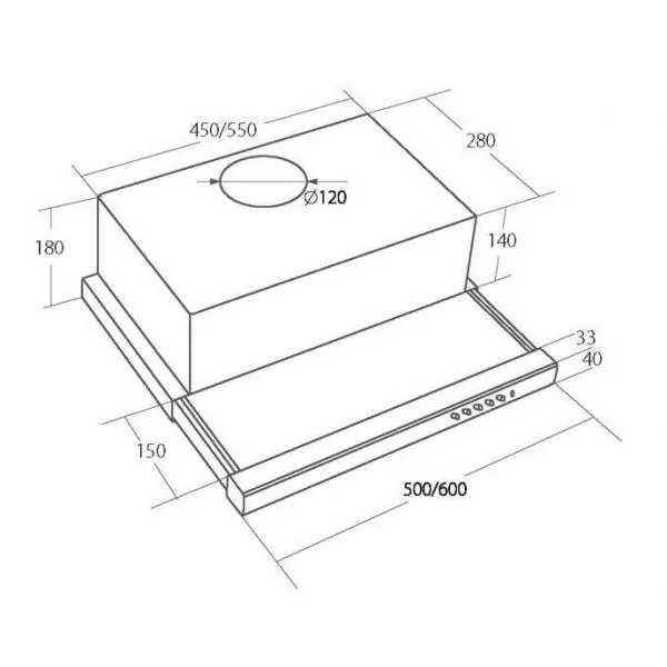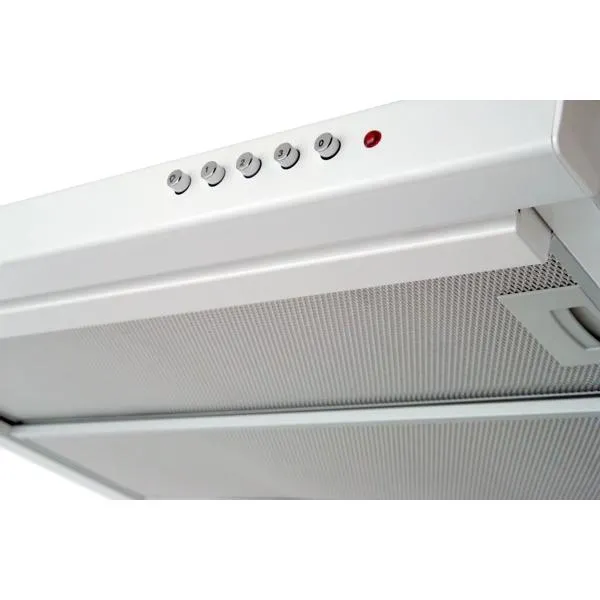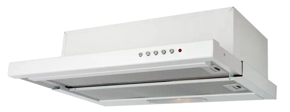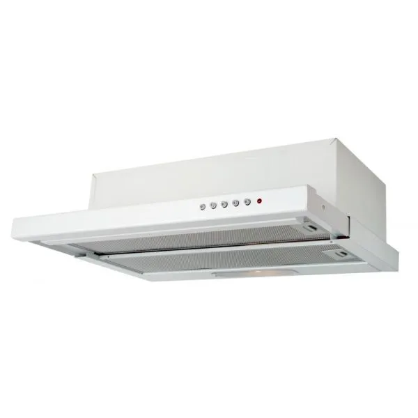 Vestavná digestoř výsuvná, šíře 50 cm, bílá, max. výkon 338 m³/h (15 Pa), hlučnost Lw 56 – 71 dB(A), 3 rychlosti, odsávací jednotky mají individuálně vyvažovanou turbínu, motory jsou opatřené vratnými tepelnými pojistkami (při přetížení motoru vypne, po jeho vychladnutí opět sepne), mechanické posuvné ovládání, kovové sendvičové tukové filtry, které lze mýt v myčce, možnost práce v odtahovém i recirkulačním režimu, Výbava: úsporné LED osvětlení 2 × 2 W, zdarma zpětná klapka