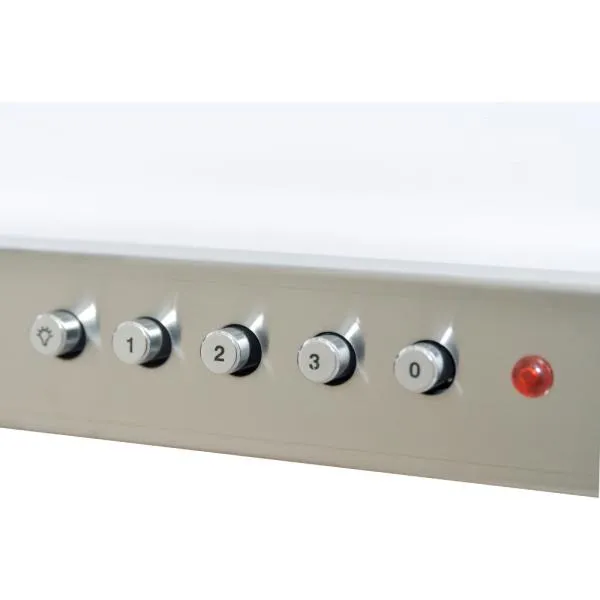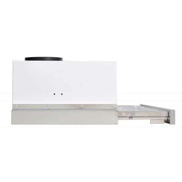Vestavná digestoř výsuvná, šíře 50 cm, bílá s nerez lištou, max. výkon 338 m³/h (15 Pa), hlučnost Lw 56 – 71 dB(A), 3 rychlosti, odsávací jednotky mají individuálně vyvažovanou turbínu, motory jsou opatřené vratnými tepelnými pojistkami (při přetížení motoru vypne, po jeho vychladnutí opět sepne), mechanické posuvné ovládání, kovové sendvičové tukové filtry, které lze mýt v myčce, možnost práce v odtahovém i recirkulačním režimu, Výbava: úsporné LED osvětlení 2 × 2 W, zdarma zpětná klapka