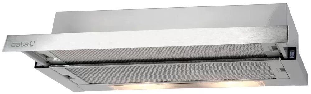 Vestavná výsuvná, 900 mm, nerez lišta s povrchem DurAlum, 1 motor 80 W, 2 rychlosti, 340 m3/h (15 Pa), max. tlak 194 Pa, max. hlučnost Lw 55 dB.