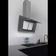 Komínová ke zdi, 900 mm, nerez/černé sklo, dotykové (senzorové) ovládání TC, 1 motor BT4DC 135 W, 5+1 rychlostí, 825 m³/h (5 Pa), max. hlučnost Lw 69 dB(A), max. tlak 365 Pa, 15 min. časovač, LED světla s nastavitelnou intenzitou jasu a volitelnými 2 odstíny bílé barvy, funkce AUTO pro propojení ovládání se shodně vybavenou varnou deskou CATA