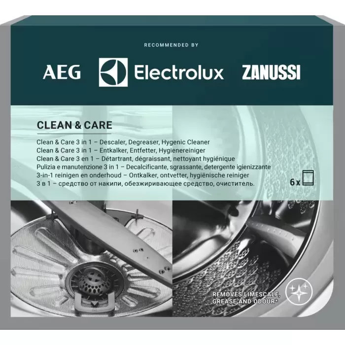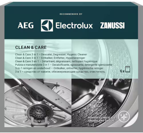 Chceme vám pomoci zajistit co nejlepší výkon vašeho spotřebiče, proto doporučujeme Clean & Care 3v1. Odmašťuje a zajistí účinné odstranění vodního kamene, aby byla vaše myčka nebo pračka čistá.