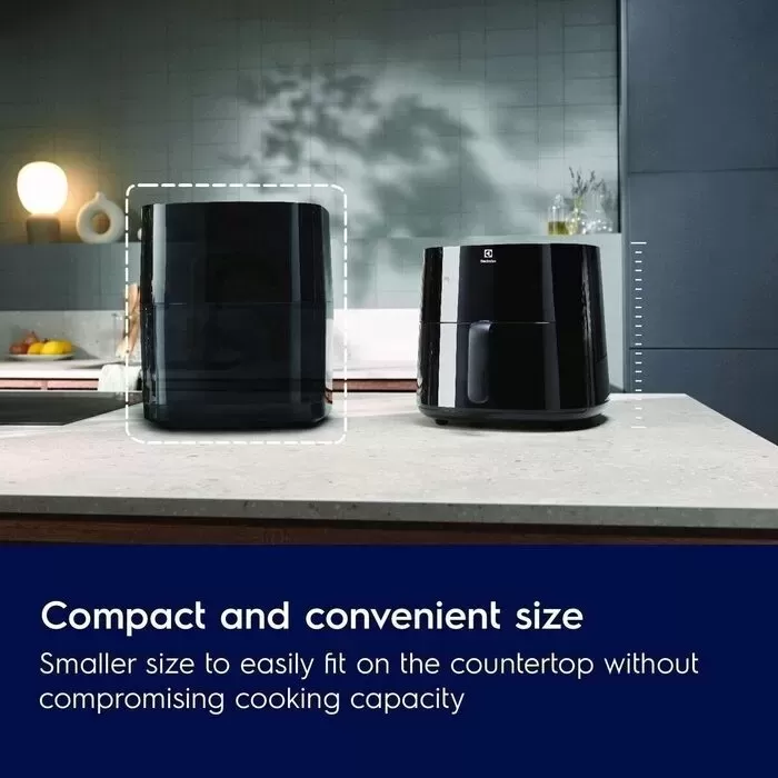 Horkovzdušná fritéza 600 má atraktivní, kompaktní design, takže zabírá na kuchyňské lince méně místa, aniž by byla omezena kapacita koše na vaření. Najednou můžete připravit až 1,2 kg hranolek – pro rychlé a křupavé výsledky.