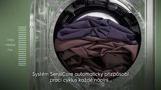 SensiCare+ je technologie snímání náplně, která zjišťuje velikost náplně a upravuje program tak, aby ušetřil až 40 % času, vody a energie na jednu náplň.* To zajišťuje přesné praní na míru každému oděvu.