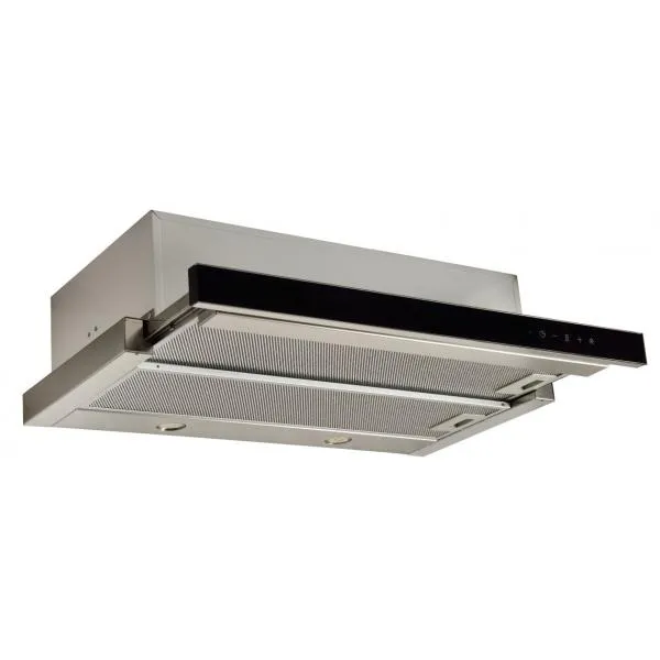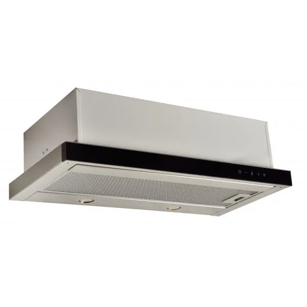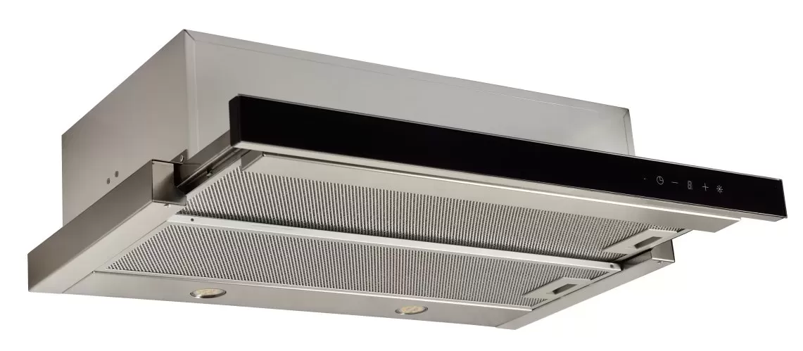 Výsuvná digestoř s listou z černého skla a s dotykovým ovládáním: Maximální výkon 200 m³/h (15 Pa), 5 rychlostí - hlučnost Lw při max. výkonu je 60 dB(A) - odsávací jednotky mají individuálně vyvažovanou turbínu - motory jsou opatřené vratnými tepelnými pojistkami (při přetížení motoru vypne, po jeho vychladnutí opět sepne) - kovové sendvičové tukové filtry, které lze mýt v myčce - výstupní průměr 120 mm – zdarma zpětná klapka - možnost práce v odtahovém i v recirkulačním režimu– funkce dovětrání (15 min. doběhový časovač)