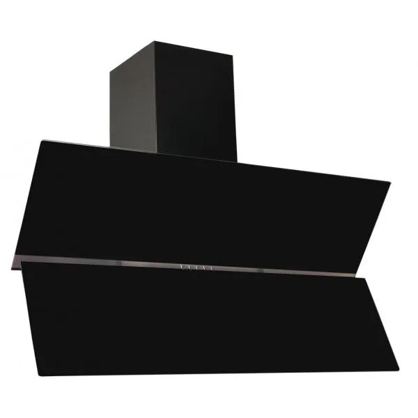 Komínová digestoř ke zdi, šíře 90 cm, černá / černé sklo, max. výkon 405 m³/h (5 Pa), hlučnost Lw 51 – 61 dB(A), 3 rychlosti, odsávací jednotky mají individuálně vyvažovanou turbínu, motory jsou opatřené vratnými tepelnými pojistkami (při přetížení motoru vypne, po jeho vychladnutí opět sepne), mechanické tlačítkové ovládání, kovové sendvičové tukové filtry, které lze mýt v myčce, možnost práce v odtahovém i recirkulačním režimu, výstupní průměr 150 mm, Výbava: úsporné LED osvětlení 2 × 2 W, zdarma redukce na 120 mm a zpětná klapka, Benefity: šikmá digestoř zvětšuje manipulační prostor nad varnou deskou a výrazně omezuje riziko bouchnutí se do hlavy o digestoř, šikmá digestoř může být instalovaná o 10-15 cm níž, než digestoře s rovnou spodní částí (snazší dostupnost ovládacích prvku i pro osoby menšího vzrůstu)