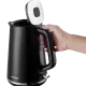 Konvice je opatřena tlačítkem, které umožňuje snadné a rychlé otevření víka jedním stiskem, což zvyšuje uživatelský komfort při plnění vodou. Hladké dno se skrytým topným tělesem zamezuje usazování nečistot. Velký vodoznak pod rukojetí nabízí přehled o množství vody uvnitř konvice. Praktický je i plně otočný podstavec s prostorem pro uschování přebytečného kabelu, na který můžete konvici postavit z jakéhokoliv úhlu.