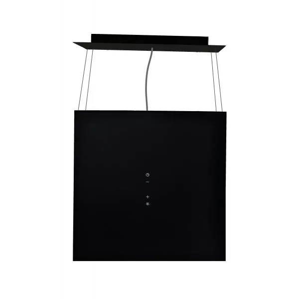 Ostrůvková lustrová digestoř, šíře 40 cm, černá / černé sklo, max. výkon 726 m³/h (5 Pa), hlučnost Lw 51 – 69 dB(A), 3 rychlosti + TURBO, odsávací jednotky mají individuálně vyvažovanou turbínu, motory jsou opatřené vratnými tepelnými pojistkami (při přetížení motoru vypne, po jeho vychladnutí opět sepne), kovové sendvičové tukové filtry, které lze mýt v myčce, digestoř určená pro provoz v recirkulačním režimu, VIP výbava: úsporné LED osvětlení 4 × 2 W, elektronické dotykové ovládání s doběhovým časovačem, zdarma dálkový ovladač i s bateriemi, Benefity: používání dálkového ovládání usnadňuje údržbu digestoře (méně otisků na digestoři = snazší čištění), ovladač je opatřený magnetem, lze jej přichytit třeba na dveře lednice (může být snadno po ruce, nikam nezapadne)