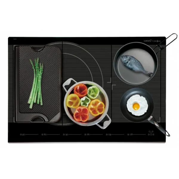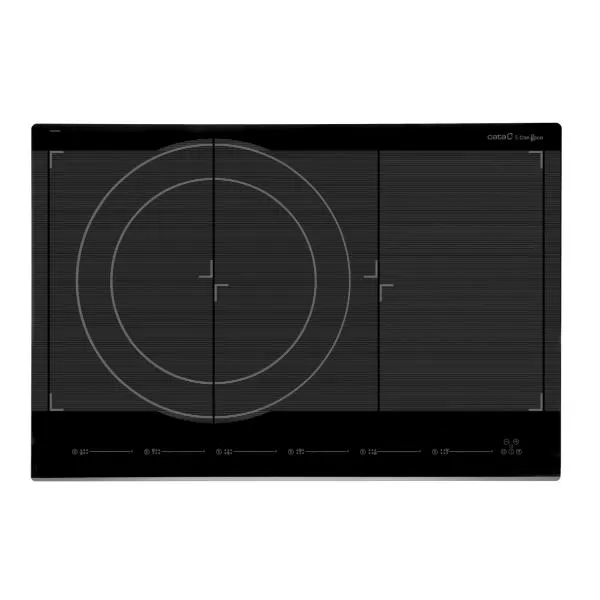 Exkluzivní indukční varná deska šíře 77 cm CATA GIGA 750 BK disponuje 6 varnými zónami s možností spojování až do jedné giga varné zóny s průměrem 40 cm + jedné obdélníkové zóny:Přední pravá zóna: 235 × 185 mm – 2,1 kW (Booster max. 3,7 kW)Zadní pravá zóna: 235 × 185 mm – 2,1 kW (Booster max. 3,7 kW)Přední střední zóna: 235 × 185 mm – 2,1 kW (Booster max. 3,7 kW)Zadní střední zóna: 235 × 185 mm – 2,1 kW (Booster max. 3,7 kW)Přední levá zóna: 235 × 185 mm – 2,1 kW (Booster max. 3,7 kW)Zadní levá zóna: 235 × 185 mm – 2,1 kW (Booster max. 3,7 kW)