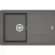 Fragranitový dřez Basis. Cena zahrnuje: Sítkový ventil 3 1/2“ s přepadem. Sifon pro úsporu místa 6/4“ s odbočkou na myčku nádobí. 2 Místa pro vyvrtání otvoru.Pozor! Baterie je umístěna ve vyspádované odkapávací ploše a je mírně nakloněna.