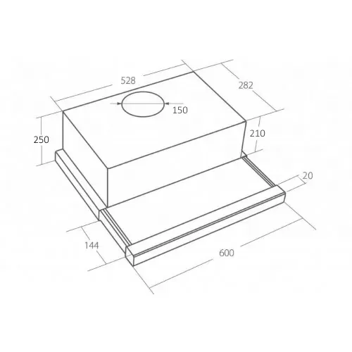 Vestavná výsuvná digestoř, šíře 60 cm, bílá s bílou skleněnou lištou, max. výkon 427 m³/h (15 Pa), hlučnost Lw 45 – 69 dB(A), 3 rychlosti, odsávací jednotky mají individuálně vyvažovanou turbínu, motory jsou opatřené vratnými tepelnými pojistkami (při přetížení motoru vypne, po jeho vychladnutí opět sepne), mechanické tlačítkové ovládání, kovové sendvičové tukové filtry, které lze mýt v myčce, možnost práce v odtahovém i recirkulačním režimu, výstupní průměr 150 mm, Výbava: úsporné LED osvětlení 2 × 2 W, zdarma redukce na 120 mm a zpětná klapka