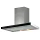 Komínová ke zdi, 900 mm, nerez/černé sklo, dotykové (senzorové) ovládání TC Slider, 1 motor BTDCA 130 W, 4+1 rychlostí, 710 m³/h (5 Pa), max. hlučnost Lw 64 dB(A), max. tlak 455 Pa, 15 min. časovač, LED osvětlení s nastavitelnou intenzitou jasu
