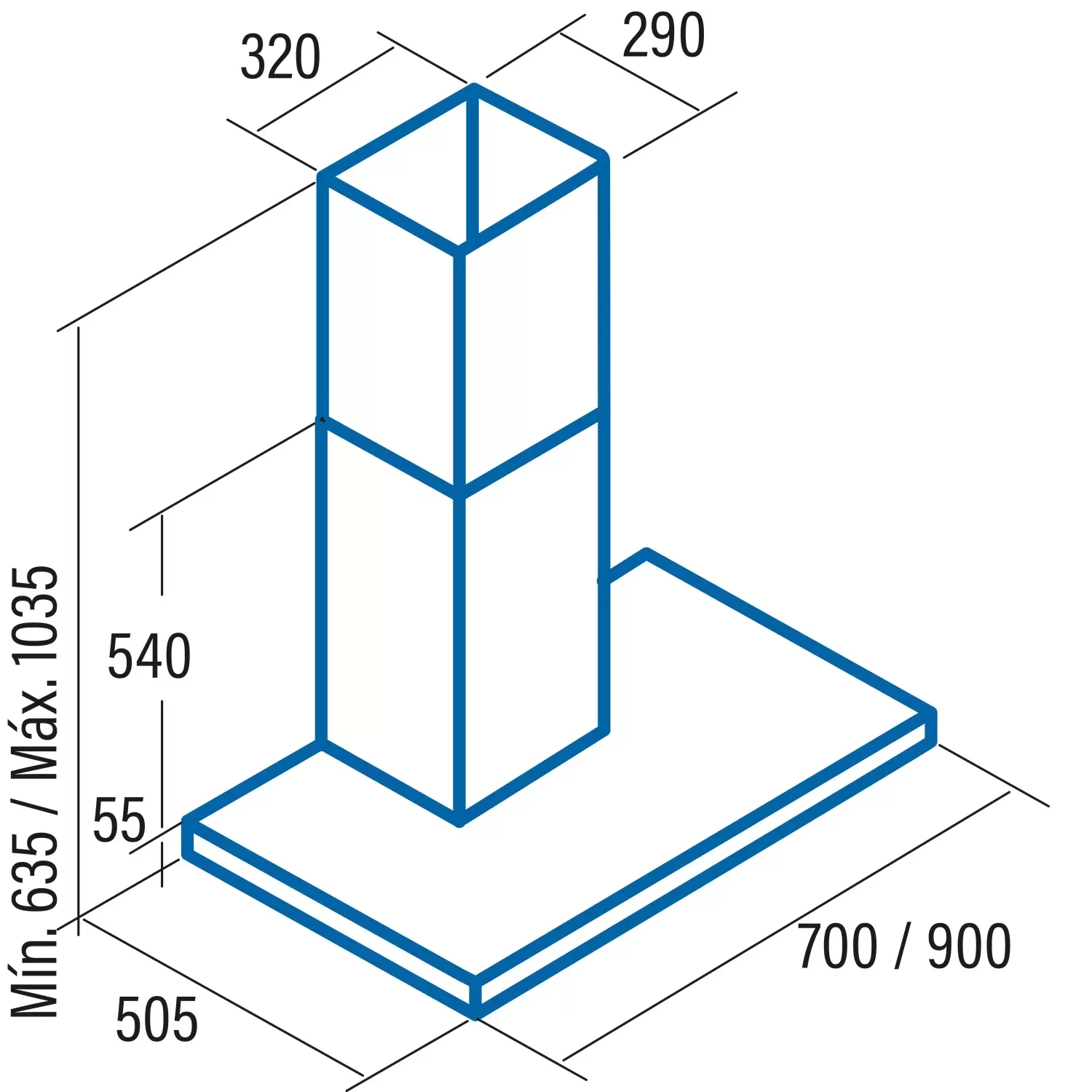 Komínová ke zdi, 900 mm, nerez, elektronické ovládání NL5i, 1 motor BTDCA 130 W, 4+1 rychlostí, 710 m³/h (5 Pa), max. hlučnost Lw 64 dB(A), max. tlak 455 Pa, 15 min. časovač, LED osvětlení s nastavitelnou intenzitou jasu