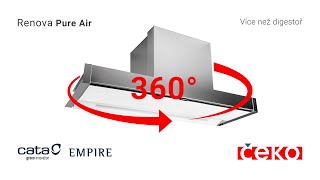 RENOVA PURE AIR MNV 90 GWH – vestavná recirkulační digestoř je unikátním řešením na trhu domácího odsávání a filtrace vzduchu. Kombinuje funkce extrémně výkonné a přesto tiché kuchyňské digestoře s čističkou vzduchu o sacím výkonu motoru 1200 m3/h v režimu TURBO. Výkon samotné digestoře je pak dle norem EU: 509 m3/h resp. 765 m3/h v režimu TURBO.