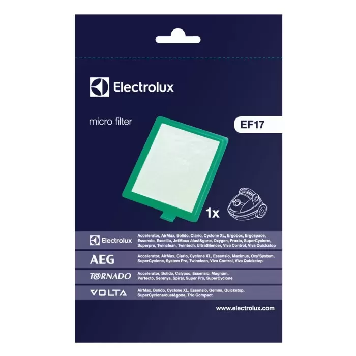 Výfukový filtr je poslední filtr, jímž vzduch prochází předtím, než opustí vysavač. Pravidelné čištění a výměna filtrů pomůže udržet nejlepší výkon. Většina z vysavačů Electrolux může být vylepšena omyvatelným filtrem s vyšším stupněm filtrace a vzduch bude dokonce čistší a vydrží delší dobu. Podívejte se na ESFW1.
