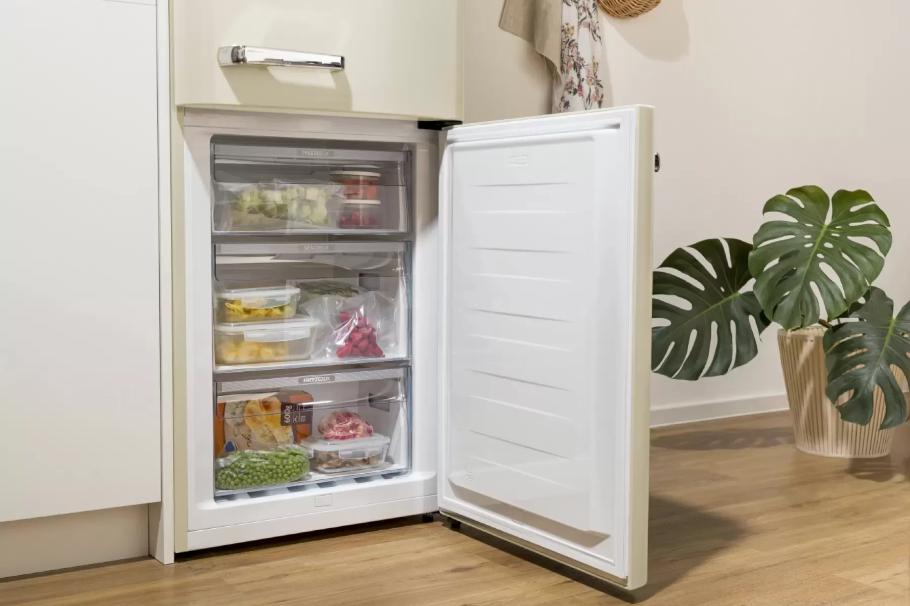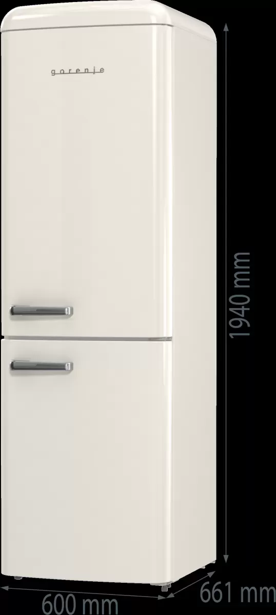 Řada Retro Volně stojící kombinovaná chladnička s mrazničkou, 194 x 60 x 66.1 cm, Béžová