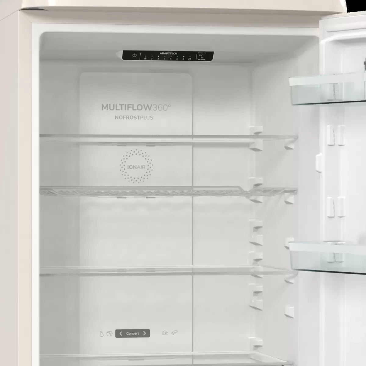 Jeden z nejlepších chladících systémů na trhu, který je instalován v mrazničce, zabraňuje akumulaci ledu a mrazu, aby tak udržoval nízkou spotřebu energie, zatímco v chladničce udržuje ideální mikroklima pro čerstvé potraviny. Cirkulace ionizovaného vzduchu zabraňuje vysoušení potravin a pomáhá v nich udržovat vitamíny a minerály.