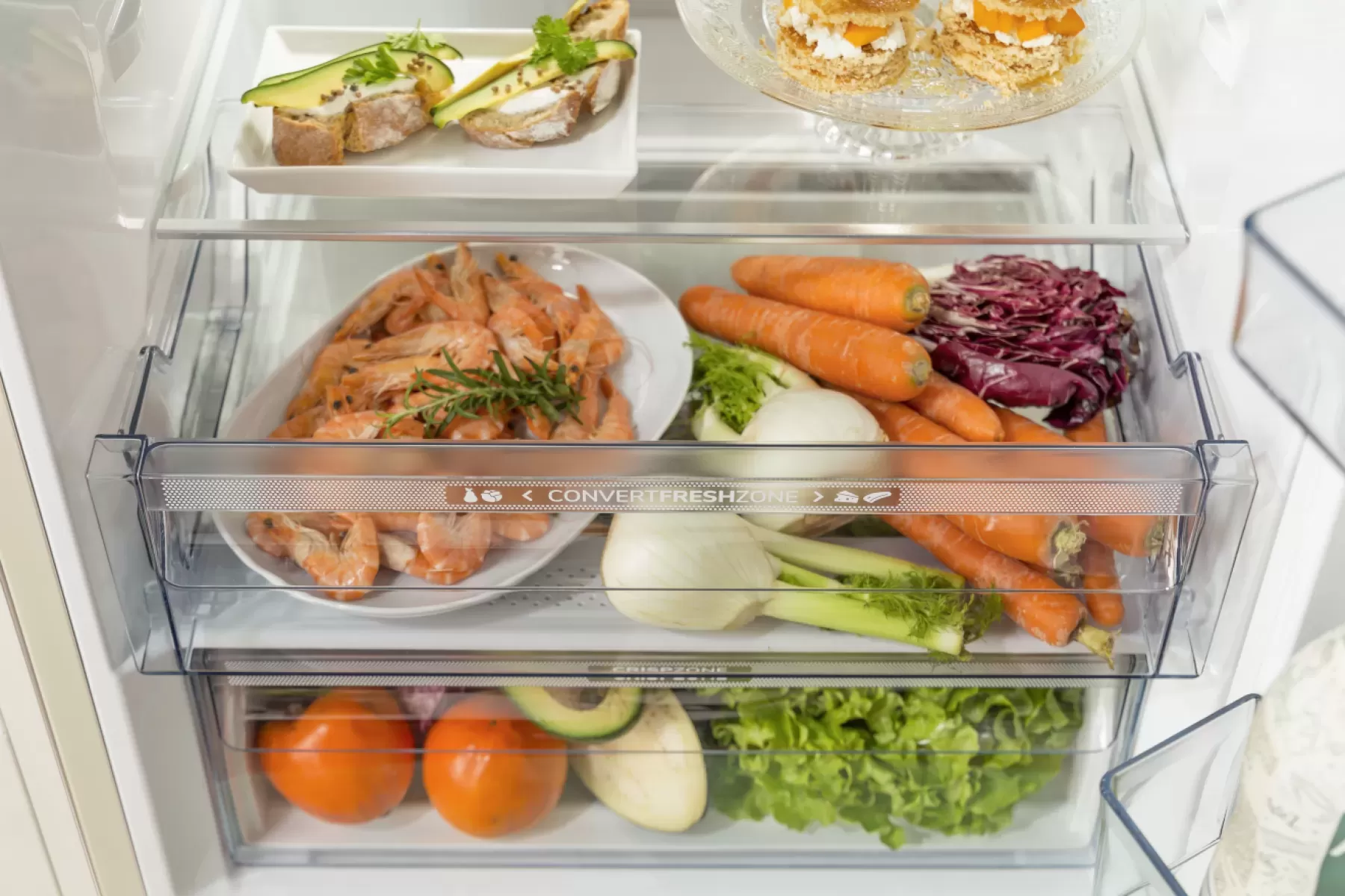 AdaptTech - Přizpůsobí se rytmu vaší domácnosti Konvertibilní zásuvka FreshZone - Buďte vždy připravení CrispZone - Velká zásuvka na ovoce a zeleninu