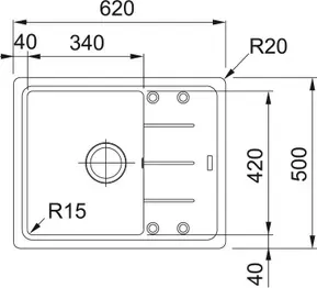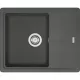 Fragranitový dřez Basis. Cena zahrnuje: Sítkový ventil 3 1/2“ s přepadem. Sifon pro úsporu místa 6/4“ s odbočkou na myčku nádobí. 4 Místa pro vyvrtání otvoru. Možnost umístit dávkovač saponátu. Pozor! Umístění dávkovače do skříňky od 600 mm. Pozor! Baterie je umístěna ve vyspádované odkapávací ploše a je mírně nakloněna.