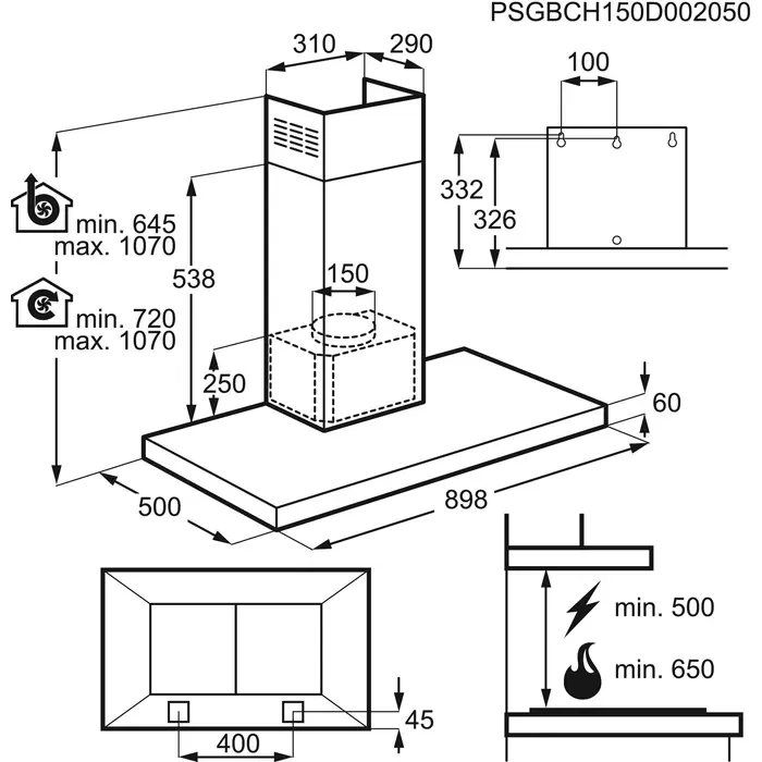 Rozměry VxŠxH (mm) 645-1070x898x500