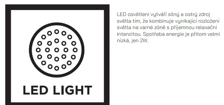 Pracovní plocha je dokonale osvětlena čtyřmi LED diodovými světly se dvěma úrovněmi intenzity osvětlení.