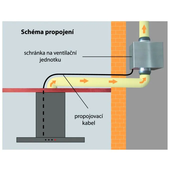 Sada EVJ 4 je schránka pro externí umístění ventilační jednotky. U všech digestoří FABER označených ikonou REMOTE BLOWER lze pomocí této sady upravit standardní digestoř na digestoř bezmotorovou. Motor, který byl původně součástí digestoře, přemístíme do nového boxu a vytvoříme tak externí ventilační jednotku (EVJ), kterou můžete instalovat mimo kuchyni. Tato úprava je provedena u distributora před expedicí. Součástí dodávky je propojovací kabel s konektory v délce dle požadavku zákazníka a kotevní materiál k upevnění EVJ. Vše je připraveno pro snadnou instalaci, k připojení EVJ stačí spojit konektor propojovacího kabelu s konektorem v digestoři. Přemístění ventilační jednotky nevyžaduje žádný zásah do konstrukce odsavače a v případě potřeby lze výrobek kdykoliv vrátit do původního stavu. Beze změny zůstává také originální spojení motor – elektronika – ovládací panel, takže všechny funkce zůstávají zachovány. Rovněž hodnota sacího výkonu zůstává nezměněna, výrazně se však sníží hlučnost. EVJ musí být umístěna vždy uvnitř domu, aby byla chráněna před povětrnostními vlivy. Může být instalována ve více polohách, připojení potrubí může být v ose nebo v úhlu 90°. Elektrické připojení k síti je v místě digestoře. Při stavební přípravě je třeba připravit průchodky o průměru min. 45 mm pro protažení spojovacího kabelu s konektorem. EVJ doporučujeme instalovat co nejdále od digestoře. Je vhodné použít tlumič hluku, minimalizuje se tím zpětné pronikání hluku potrubím, při maximálním výkonu až o 13 dB(A). Cena zahrnuje propojovací kabel v délce 4 metry. Za každý další metr propojovacího kabelu se cena navyšuje o 100 Kč. Jedná se o zakázkovou úpravu, proto je třeba počítat s delší dobou dodání - 10-15 pracovních dnů. NELZE OBJEDNAT SAMOSTATNĚ, POUZE S ODSAVAČEM JAKO KOMPLET!!!