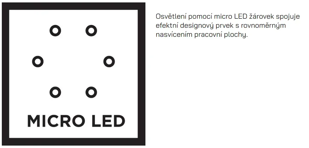 Pracovní plocha je dokonale osvětlena šesti MICRO LED diodami, které vytváří zajímavý detail výrobku.