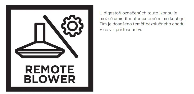 Upozornění: Při objednávce je třeba upřesnit způsob napojení potrubí z digestoře a délku propojovacího kabelu.
