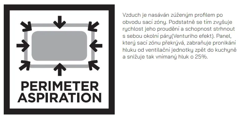 Vzduch je nasáván štěrbinou po obvodu digestoře.