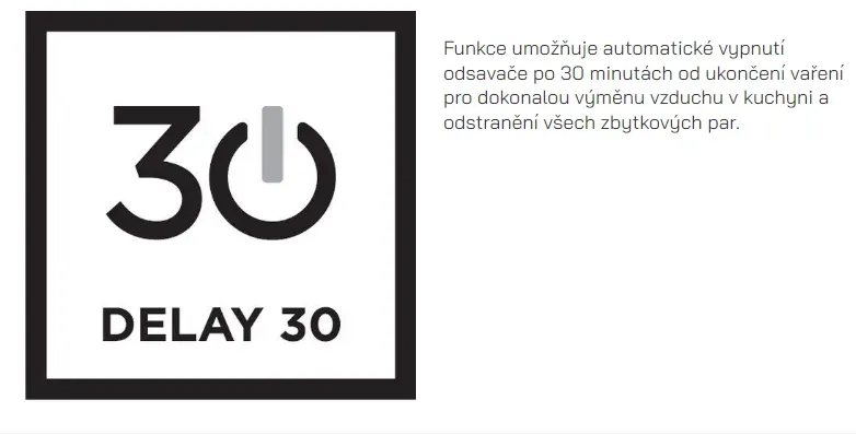 Odsavač se může pyšnit nadstandardním množstvím funkcí, je vybaven intenzivním odsáváním, signalizací nasycení filtrů a možností doběhu po ukončení vaření.