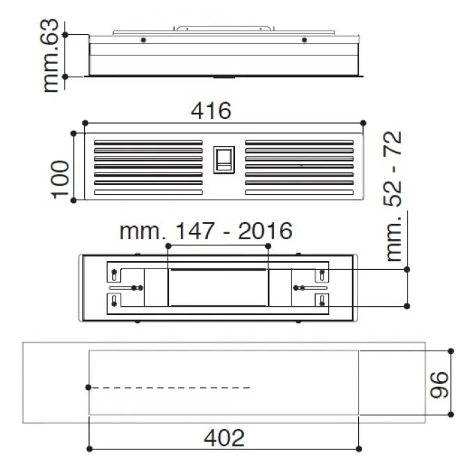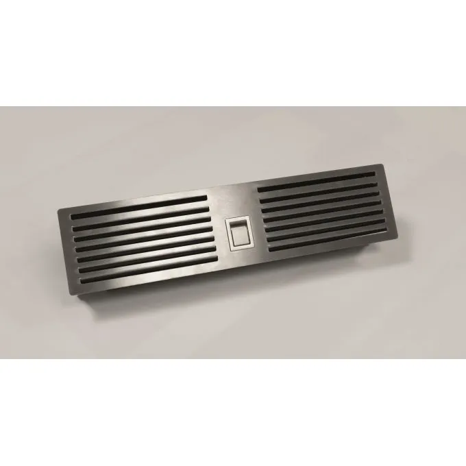 Nerezová výstupní mřížka je určena k montáži do soklu skříněk pro recirkulační provoz digestoře Fabula..