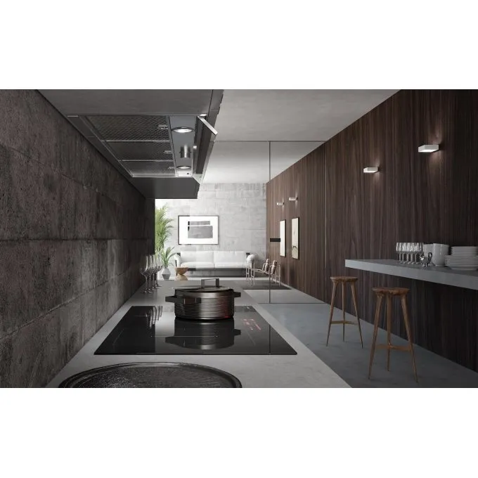Nerezové tukové filtry dodávají tomuto výrobku exkluzivní vzhled. Díky nové konstrukci zámků je snadno vyjmete a umyjete v myčce na nádobí. Dvířka skříňky jsou před parami chráněna skleněným výklopným čílkem.