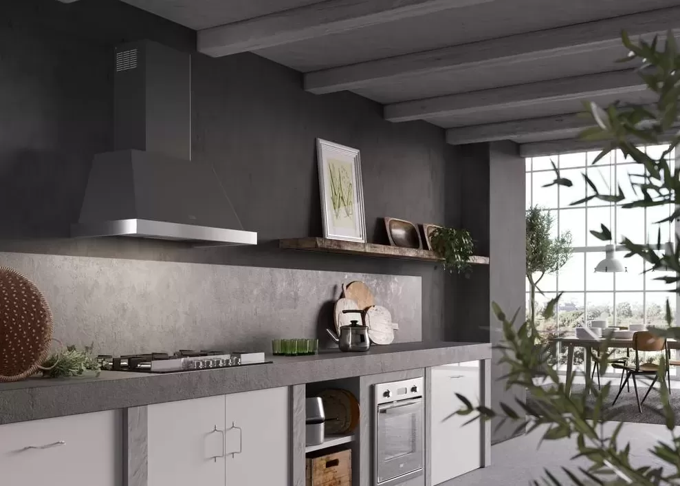 Odsavač THEA v tmavě šedém matném provedení je vybaven výkonnou ventilační jednotkou EVO, která zajistí vysokou účinnost při nízké spotřebě energie.