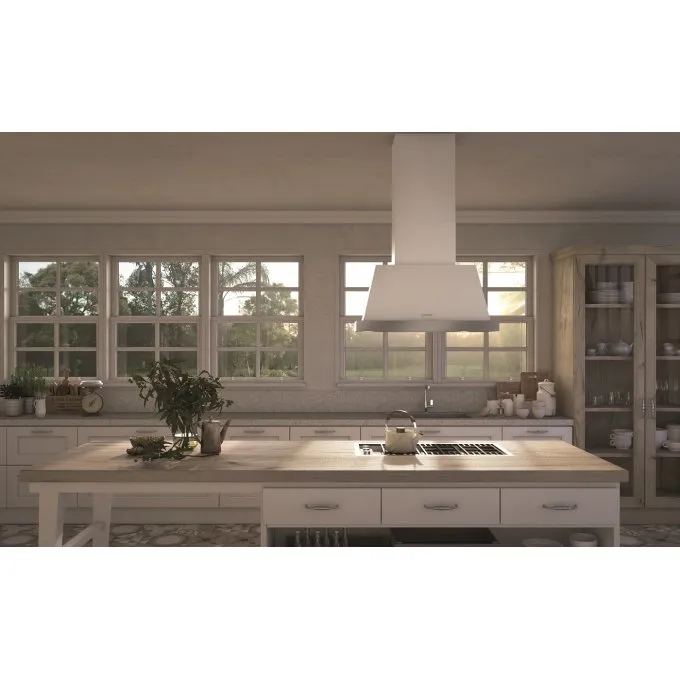 Vintage duše ostrůvkové rustikální digestoře THEA ISOLA v sobě spojuje venkovský styl s moderní technologií a nabízí nadčasovou eleganci spojenou se špičkovým výkonem. Odsavač THEA v matně bílém provedení je vybaven výkonnou ventilační jednotkou EVO, která zajistí vysokou účinnost při nízké spotřebě energie.