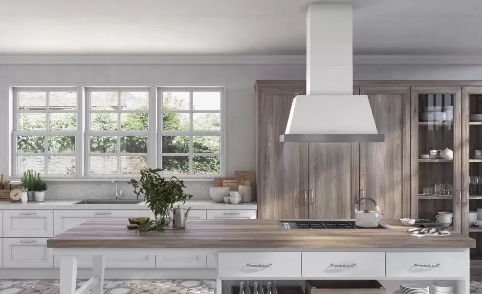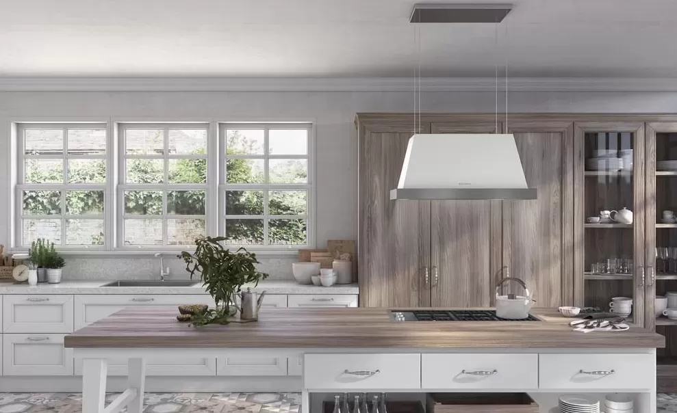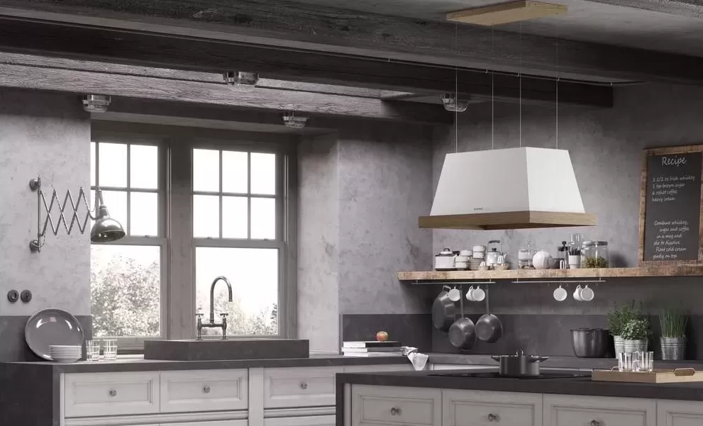 Vintage duše ostrůvkové rustikální digestoře THEA ISOLA v sobě spojuje venkovský styl s moderní technologií a nabízí nadčasovou eleganci spojenou se špičkovým výkonem.