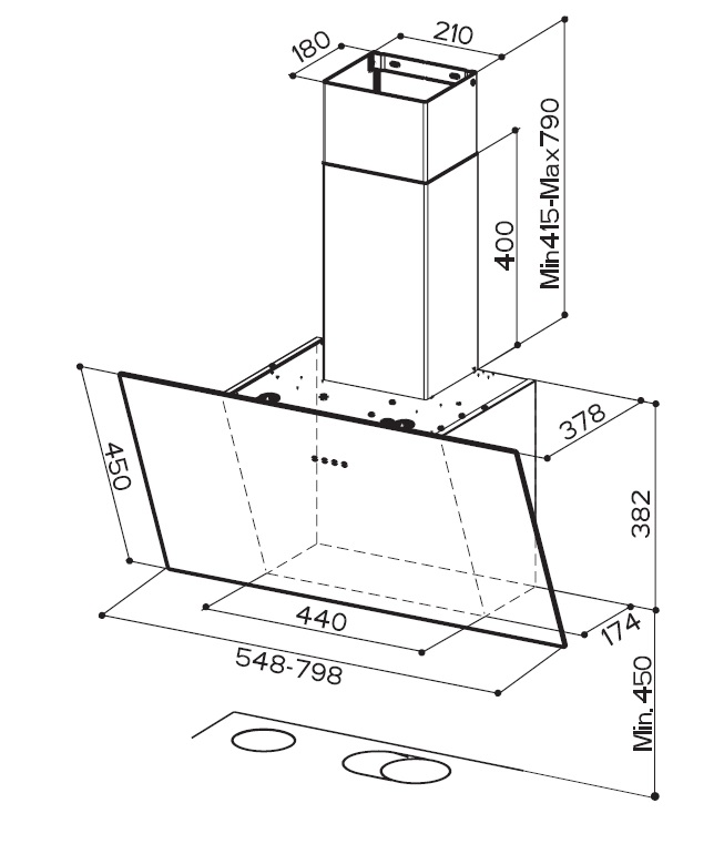V těchto případech jsou technické parametry digestoře shodné s parametry vybrané externí ventilační jednotky.