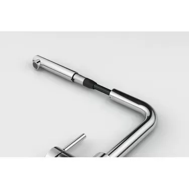 Otočná 360°. S vytahovací koncovkou osazenou perlátorem. Opletená sprchová hadice 150 cm. Připojení Hadičky 47 cm. Průtok vody 7,2 l/min. (3 bar).