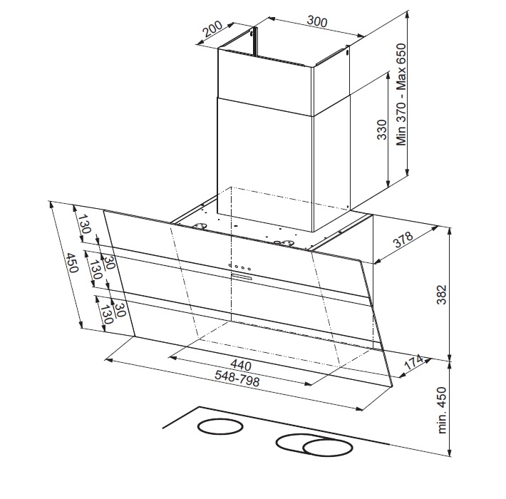 Ovládání je dotykové a nabízí tři rychlostní stupně, funkci intenzivního odsávání a doběh po ukončení vaření.