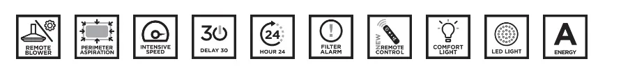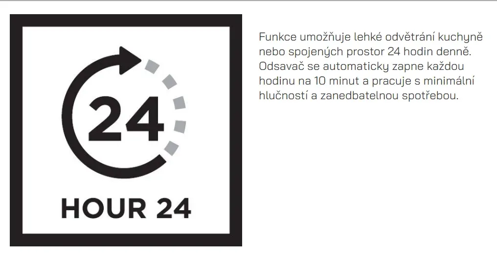 Dotykové ovládání nevystupující z linie čelního panelu vám nabídne nadstandardních množství funkcí. Odsavač se může pyšnit funkcí intenzivního odsávání, signalizací nasycení filtrů, možností doběhu po ukončení vaření a funkcí ventilace "24", která zabezpečí celodenní ventilaci vaší kuchyně.