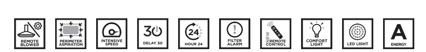 Dotykové ovládání nevystupující z linie čelního panelu vám nabídne nadstandardních množství funkcí. Odsavač se může pyšnit funkcí intenzivního odsávání, signalizací nasycení filtrů, možností doběhu po ukončení vaření a funkcí ventilace "24", která zabezpečí celodenní ventilaci vaší kuchyně.