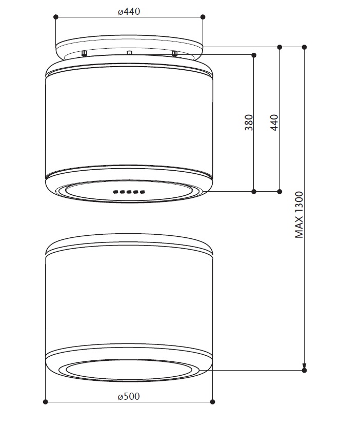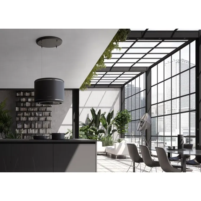 Dokonale válcový tvar ukrývá high-tech srdce digestoře ODETTE a dodává kuchyni nezaměnitelný nádech současného designu.