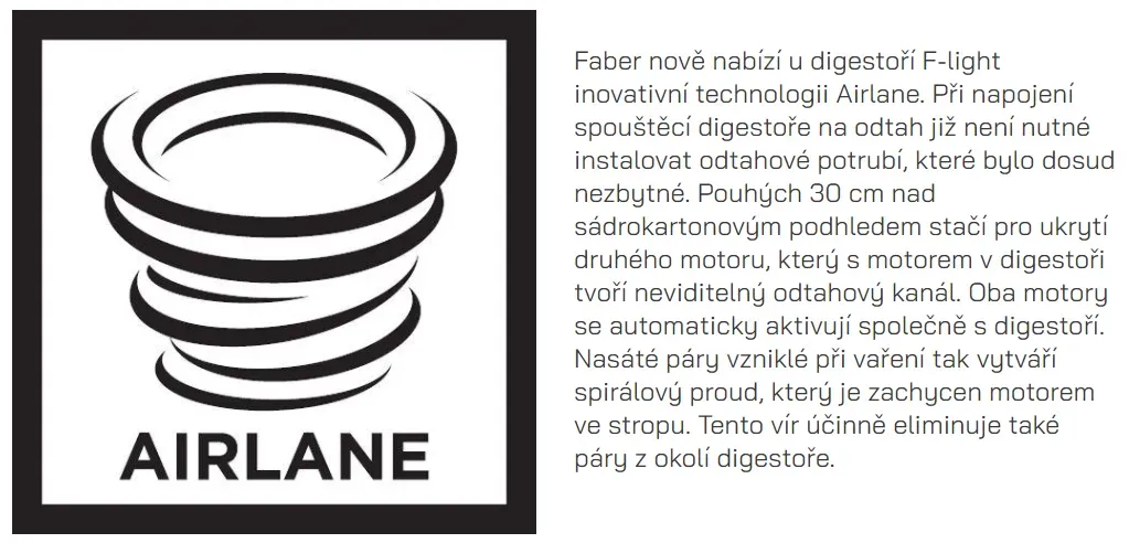 Pomocí sady AIRLANE, kterou lze objednat, je možno ji zapojit také na vnější odtah a to bez nutnosti odtahového potrubí, více viz sada AIRLANE.