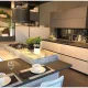 V klidové poloze je digestoř u stropu, kde neruší ve výhledu do obytné části.