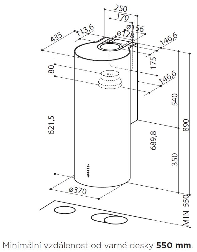 Předností tohoto odsavače je přímý odtah z těla digestoře dozadu.