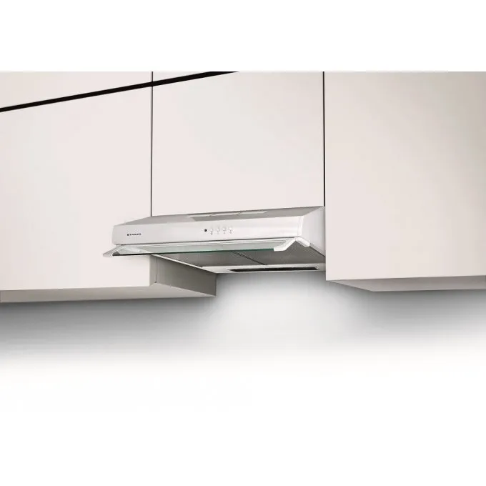 Nenáročná montáž, úspora místa ve skříňce a provedení v bílé barvě, která bude ladit se všemi ostatními barvami v kuchyni, z něj dělají ideální digestoř do menších kuchyní.
