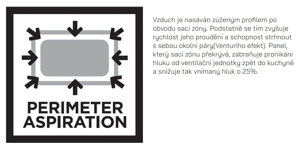 Podvěsná digestoř je vybavena kovovými kazetovými tukovými filtry, které není třeba měnit a lze je jednoduše umýt v myčce nádobí.