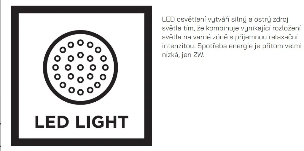 Na vaše kuchařské umění vám dokonalé posvítí dvě LED diodová světla příjemnou intenzitou a velmi nízkou spotřebou.