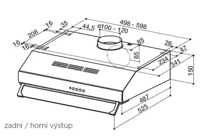 Ovládání je tlačítkové, skleněné výklopné čílko zvětšuje sací plochu digestoře. Odtahové potrubí můžete napojit z horní i ze zadní části digestoře, přesně tak, jak vám bude vyhovovat.
