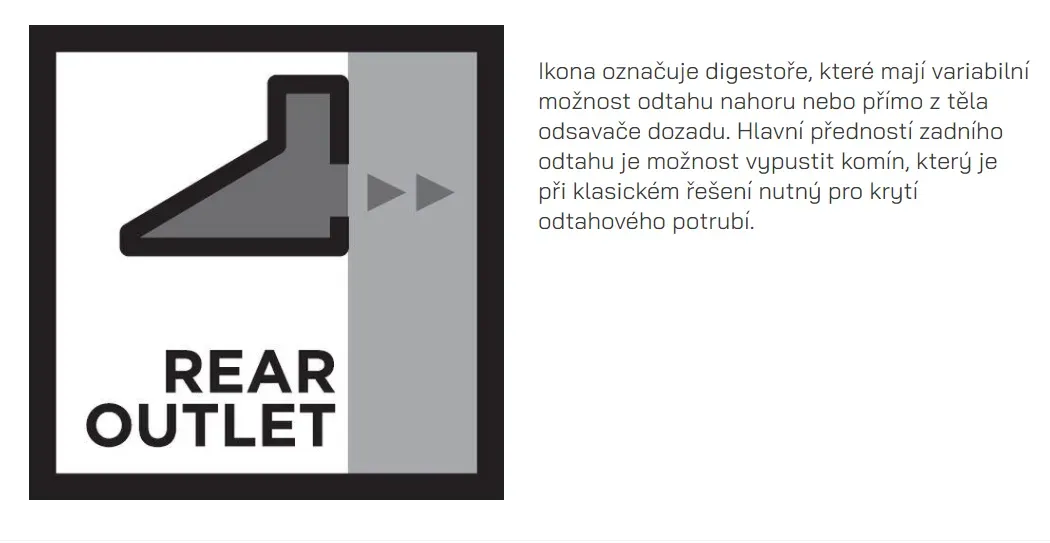 Ovládání je tlačítkové, skleněné výklopné čílko zvětšuje sací plochu digestoře. Odtahové potrubí můžete napojit z horní i ze zadní části digestoře, přesně tak, jak vám bude vyhovovat.
