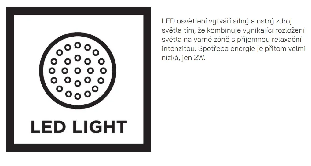 Na vaše kuchařské umění vám dokonale posvítí dvě LED diodová světla příjemnou intenzitou a velmi nízkou spotřebou.